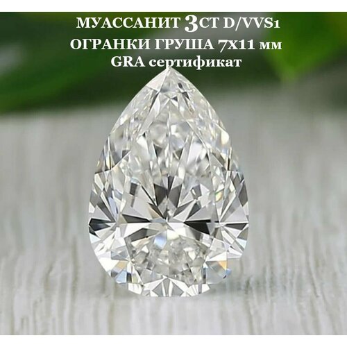 Муассанит отдельно бесцветный (D/VVS1) с редкой бриллиантовой огранкой груша (pear) размером 7 на 11 мм. (эквивалентно 3 каратному бриллианту). Используйте при изготовление нового ювелирного изделия, либо замените старый камень в своем украшение на самую близкую и разумная альтернативу бриллианту, превосходящая последний по многим параметрам. Муассанит имеет более чем в два раза большую способность рассеивать лучи (дисперсия) и на 20% больший коэффициент преломления в сравнение с бриллиантом. Остальные свойства этих камней очень близки, поэтому специалисты и приборы часто не могут отличить их друг от друга. Стандартный тестер определяет муассанит как бриллиант. В отличие от фианита и Сваровски муассанит не тускнеет и не царапается.
