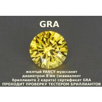 Муассанит круг отдельно диаметром 8 мм (как бриллиант 2 карата). Стандартная бриллиантовая огранка 57 граней. Редкий и модный желтый цвет FANCY YELLOW популярный в элитных урашениях лучших ювелирных домов. Используйте при изготовление нового ювелирного изделия, либо замените старый камень в своем украшение на самую близкую и разумная альтернативу бриллианту, превосходящая последний по многим параметрам. Муассанит имеет более чем в два раза большую способность рассеивать лучи (дисперсия) и на 20% больший коэффициент преломления в сравнение с бриллиантом. Остальные свойства этих камней очень близки, поэтому специалисты и приборы часто не могут отличить их друг от друга. Стандартный тестер определяет муассанит как бриллиант. В отличие от фианита и Сваровски муассанит не тускнеет и не царапается.
