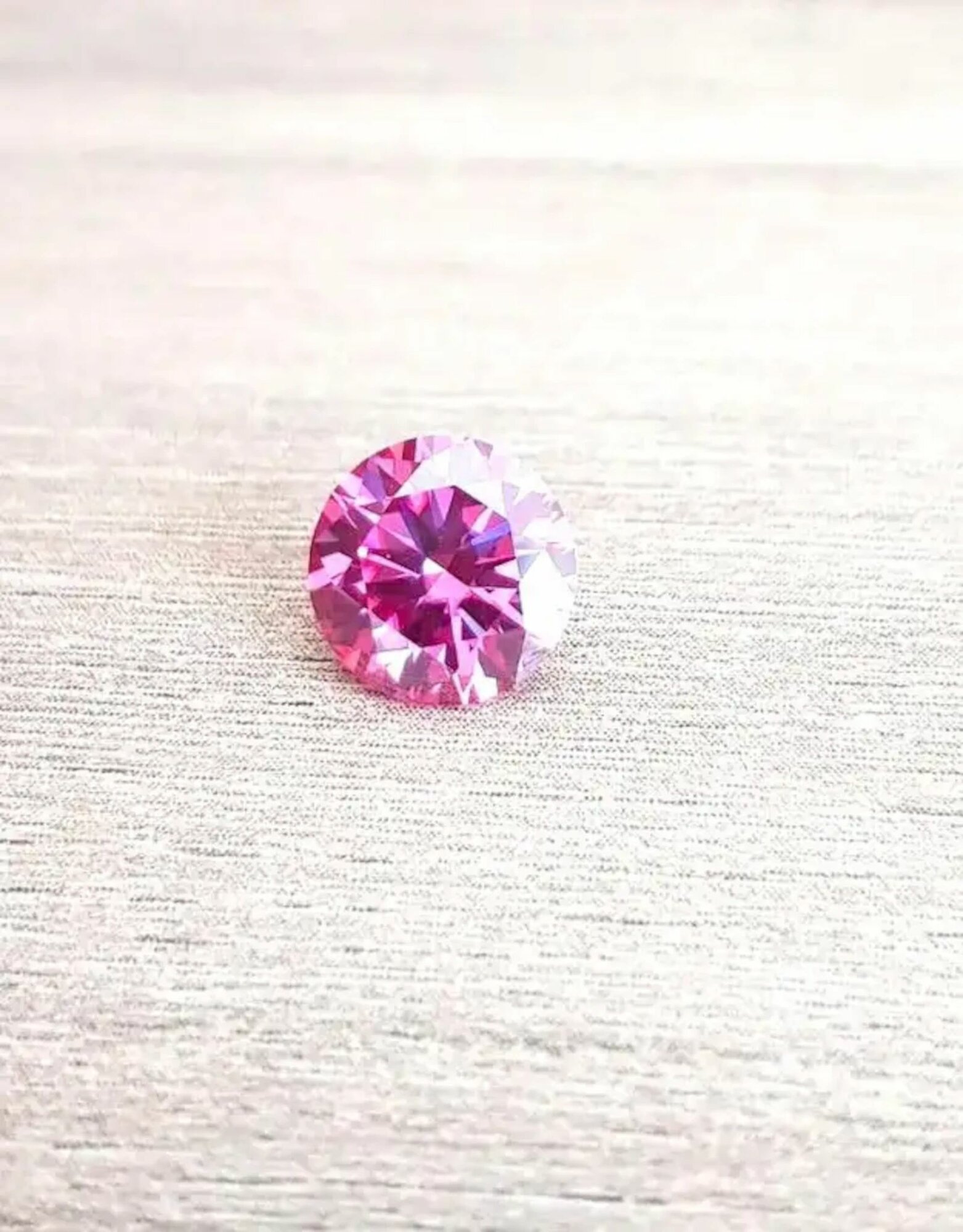 Муассанит круг отдельно диаметром 5 мм (как бриллиант 0,5 карата). Стандартная бриллиантовая огранка 57 граней. Редкий и модный розовый (Pink) цвет популярный в элитных украшениях.