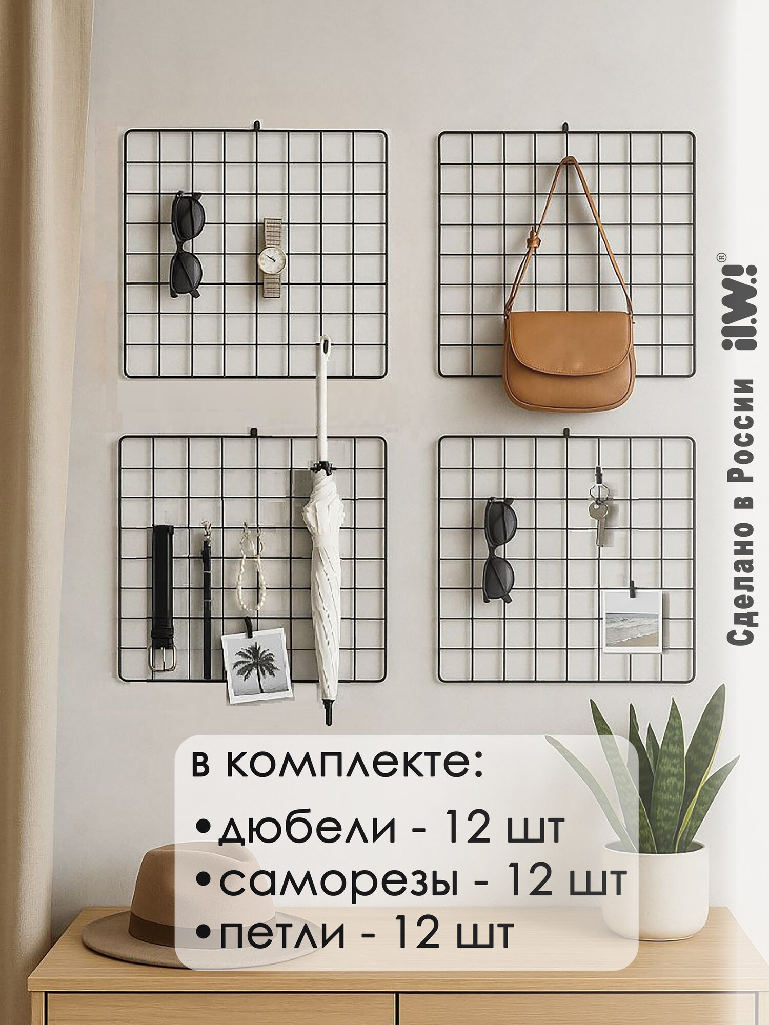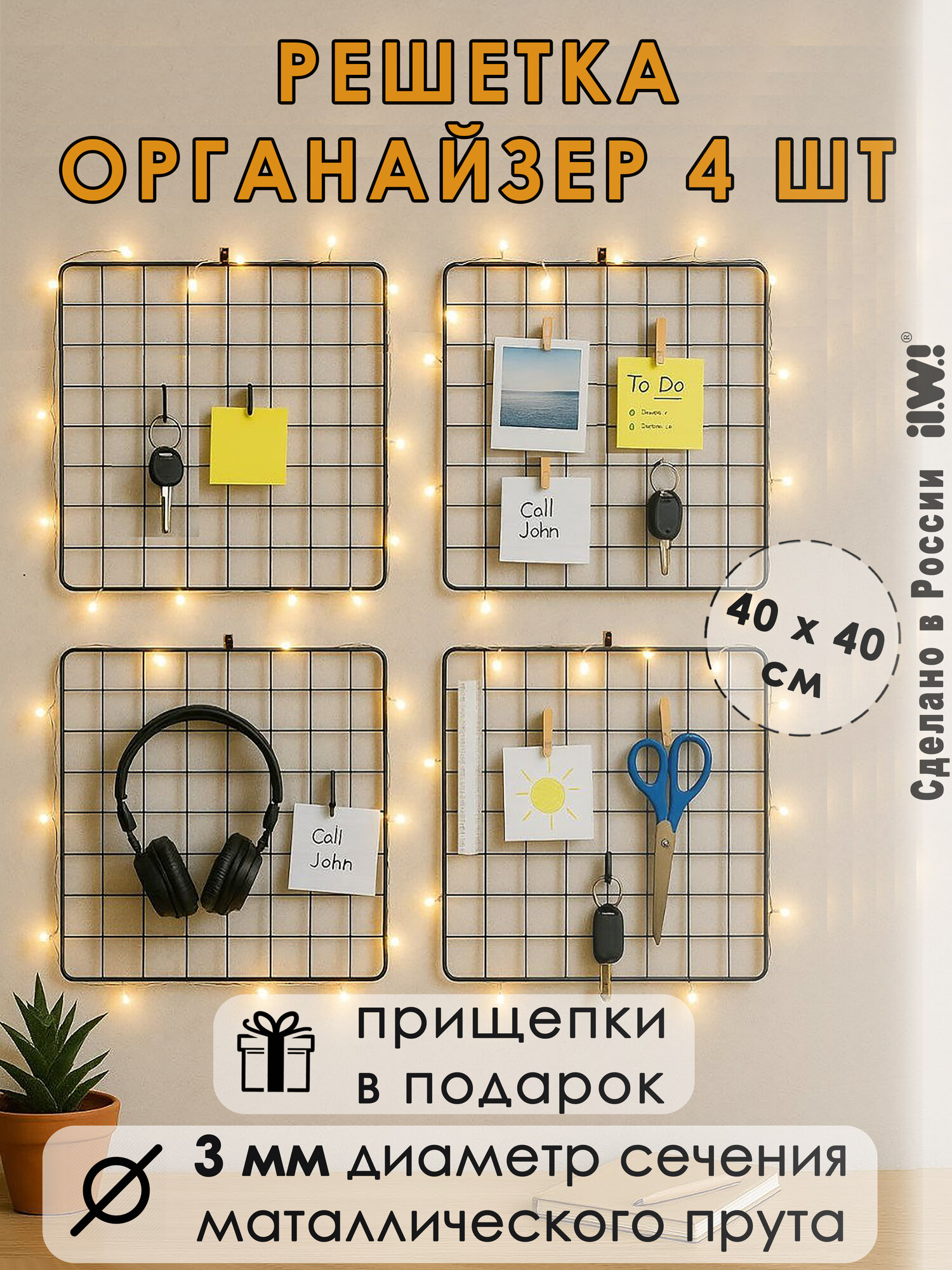 Купить Мудборд настенный ilwi INT-W-OR-P1-N/1-k4 для заметок, органайзер-решетка для фотографий 4 шт с доставкой по всей России.