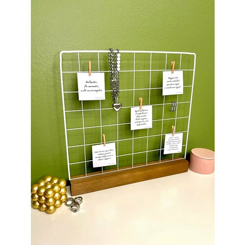 Металлическая сетка в форме решетки позволяет удобно размещать любимые снимки, открытки и вырезки из журналов. Настольный вариант придаст вашему интерьеру нотку стиля и индивидуальности.
