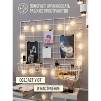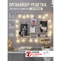 Мудборд, выполненный из качественных материалов в элегантном белом муаре, идеально подойдет для размещения на стене. Его размер составляет 60,5х45,5 см, что позволяет разместить множество необходимых мелочей. Благодаря решетчатой структуре, мудборд на стену можно использовать как держатель для фото, записок, заметок или других важных мелочей.