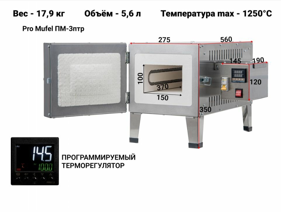 Программируемый терморегулятор позволяет регулировать скорость нагрева печи, выдерживать температурные полки(выдержки) и контролировать остывание.