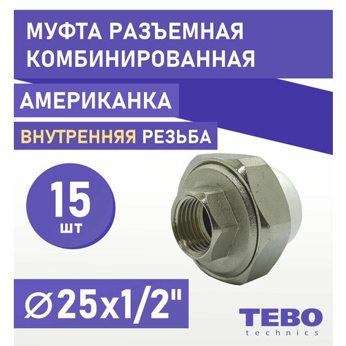 Муфта 25х1/2″ разъемная (американка), внутренняя резьба, комплект 15 шт, полипропиленовая комбинированная переходная разборная / фитинги для труб /для отопления/ Tebo (белый): сравнение цен, характеристики, фото, актуальное наличие и цены.