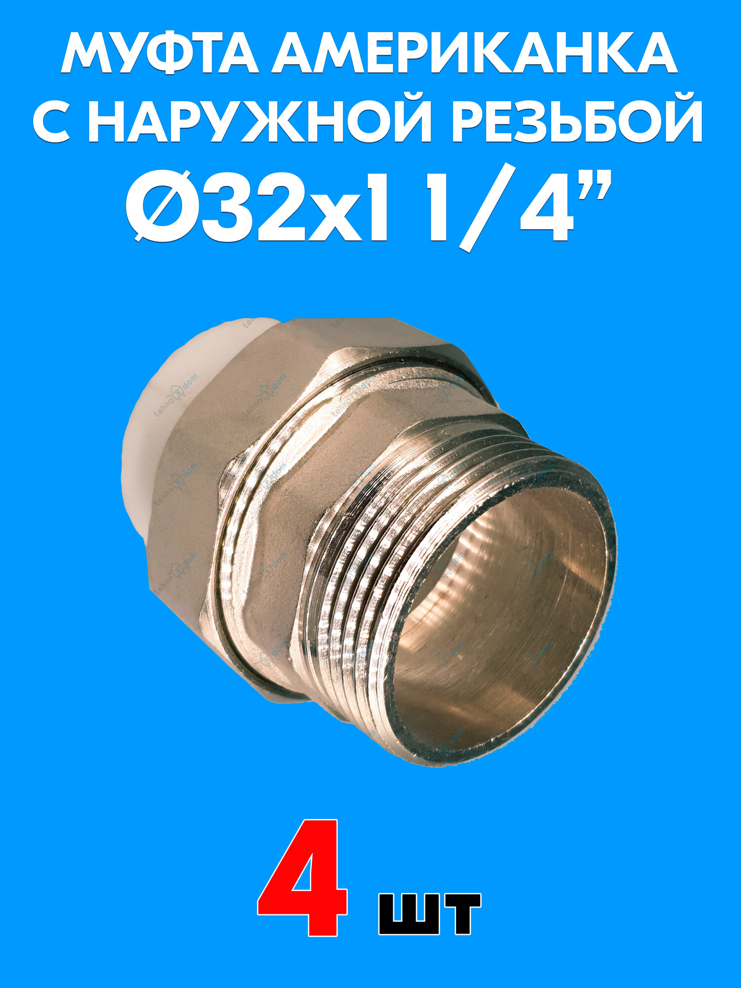 Муфта комбинированная разъемная (американка) с наружной резьбой 32×1 1/4″ (4 шт): сравнение цен, характеристики, фото, актуальное наличие и цены.