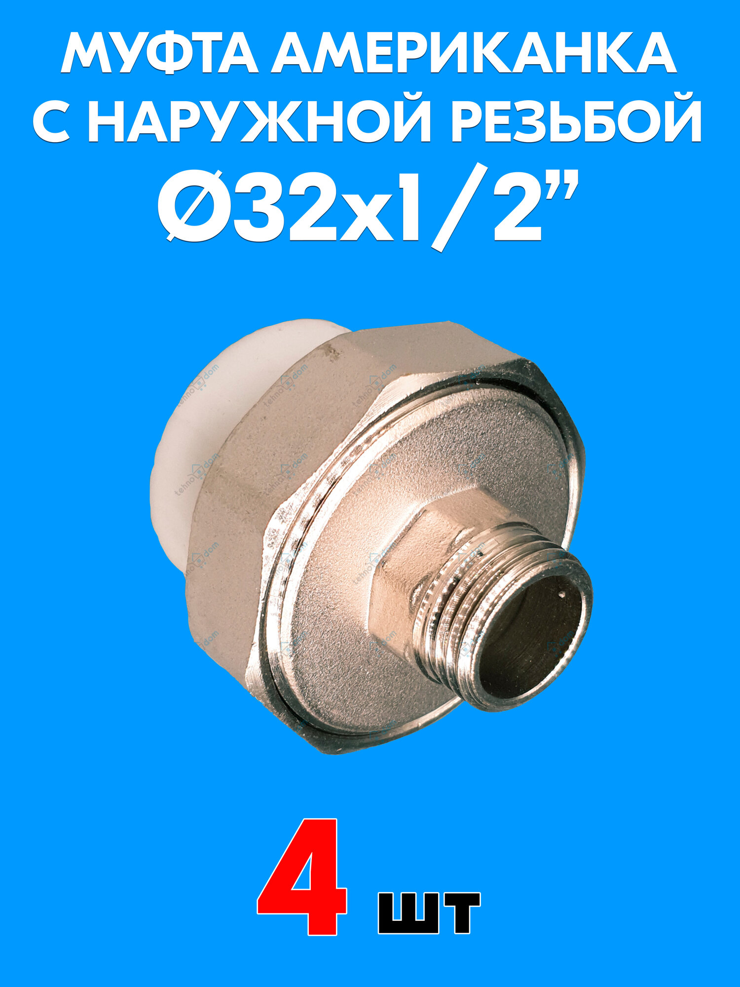 Муфта комбинированная разъемная (американка) с наружной резьбой 32×1/2″ (4 шт): сравнение цен, характеристики, фото, актуальное наличие и цены.