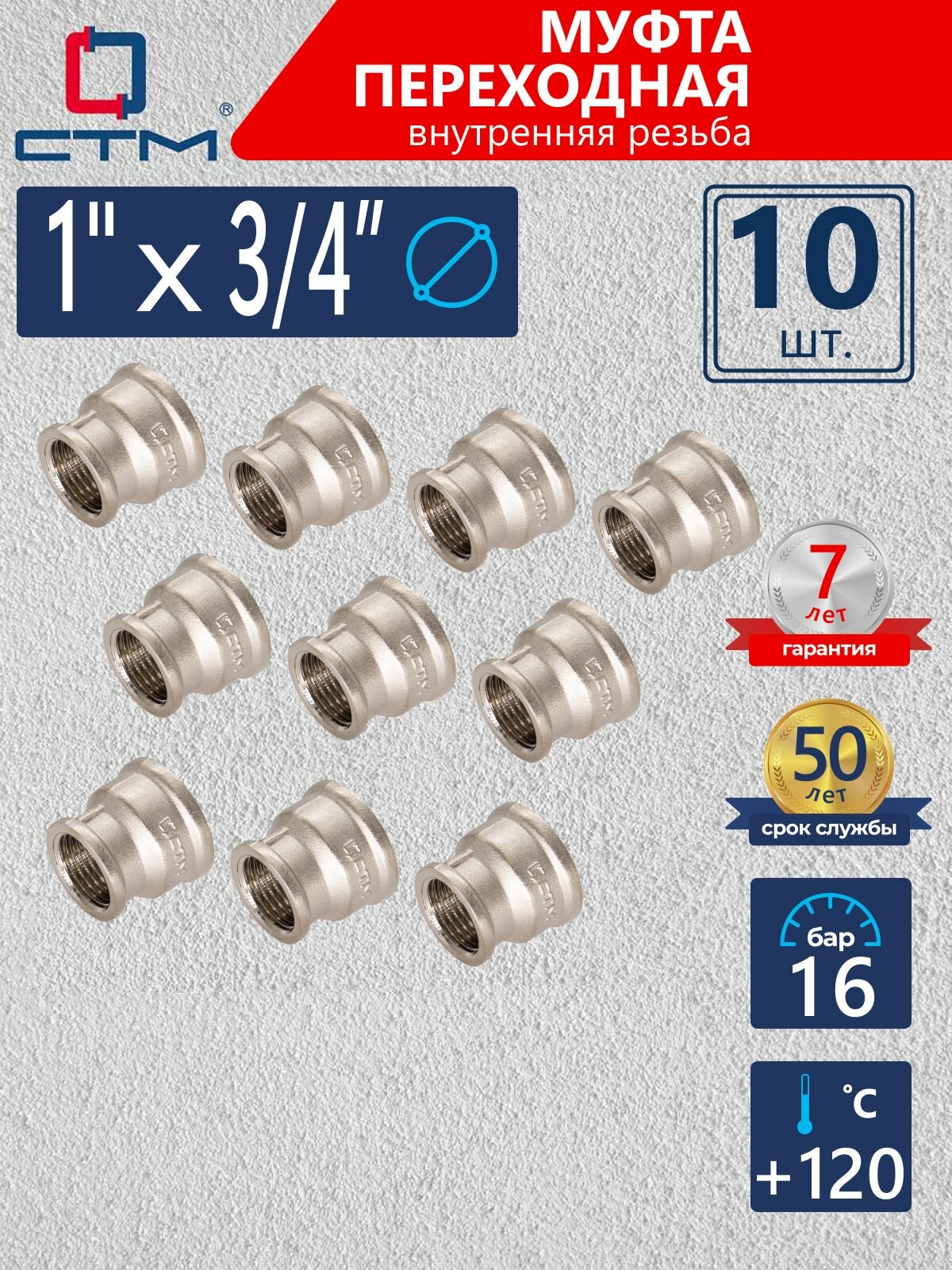 Купить Муфта переходная 1″х3/4″ внутренняя резьба CTM (10 шт.) с доставкой по всей России. Муфта переходная 1″х3/4″ внутренняя резьба CTM (10 шт.): сравнение цен, характеристики, фото, актуальное наличие и цены.