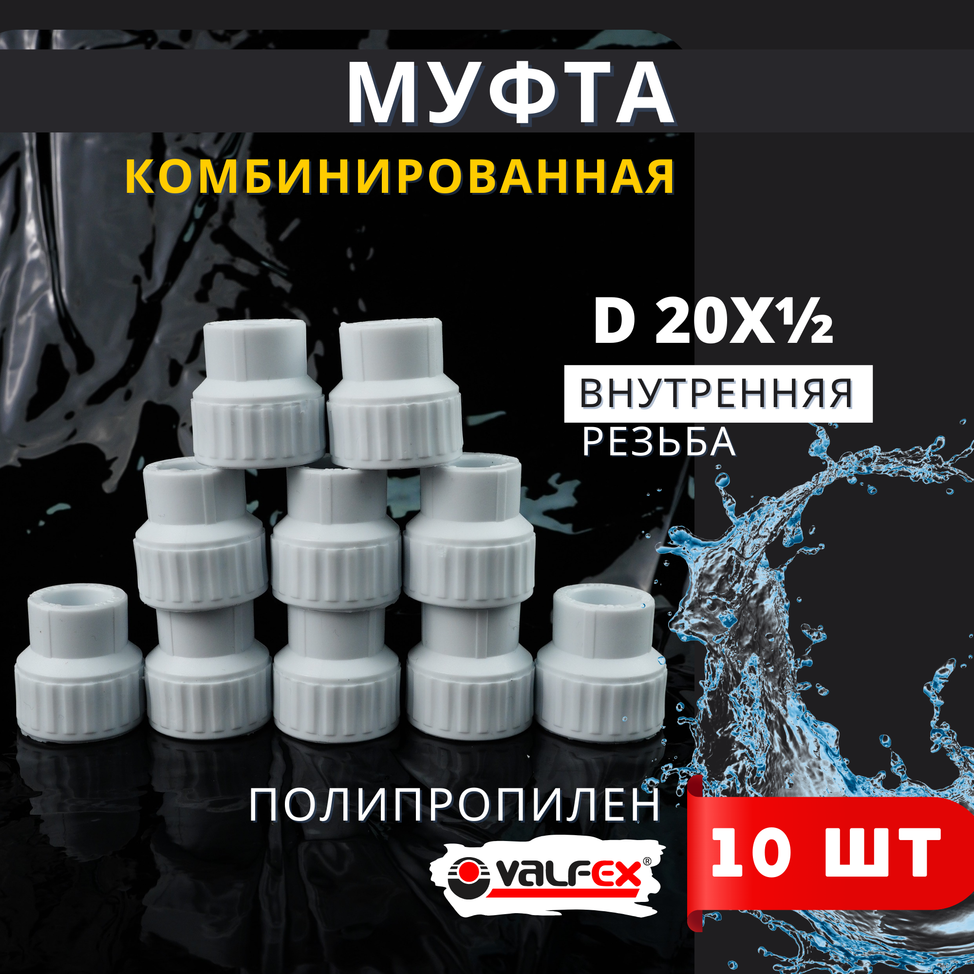 Муфта полипропиленовая 20х1/2 комбинированная, внутренняя резьба PPRC (Valfex) 10шт.: сравнение цен, характеристики, фото, актуальное наличие и цены.