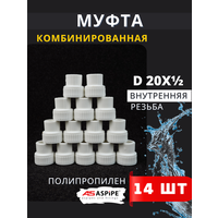 ASPiPE PPRC Муфта комбинированная с внутренней резьбой 20х1/2 применяется для соединения полипропиленовых труб со стальными трубопроводами или запорной арматурой. Резьба нанесена на металлической втулке, запрессованной в корпус из полипропилена. На данную резьбу можно навинтить кран, другую муфту, гайку и др. Муфта комбинированная с внутренней резьбой используются в трубопроводных распределительных системах жилых, административных и промышленных зданиях для транспортировки питьевой и технической воды, в системах отопления. Данная муфта легко совмещается со стальной арматурой, имеет все доступные размеры резьб, чтобы подбор фитингов не затруднил процесс монтажа сантехнических приборов. Характеристики ASPiPE PPRC Муфта комбинированная (вн. рез.) 20-1/2 Максимальное давление - 25 атм; Размер муфты - 20 мм; Размер резьбы - 1/2 дюйм