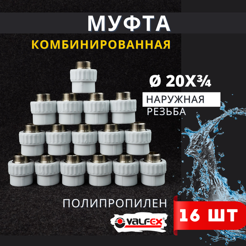 Муфта полипропиленовая 20х3/4 комбинированная, наружная резьба PPRC (Valfex) 16шт.: сравнение цен, характеристики, фото, актуальное наличие и цены.