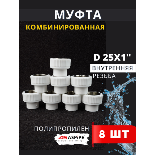 ASPiPE PPRC Муфта комбинированная с внутренней резьбой 25-1 применяется для соединения полипропиленовых труб со стальными трубопроводами или запорной арматурой. Резьба нанесена на металлической втулке, запрессованной в корпус из полипропилена. В данную резьбу можно завинтить кран, другую муфту, гайку и др. Муфта комбинированная с внутренней резьбой используются в трубопроводных распределительных системах жилых, административных и промышленных зданиях для транспортировки питьевой и технической воды, в системах отопления. Данная муфта легко совмещается со стальной арматурой, имеет все доступные размеры резьб, чтобы подбор фитингов не затруднил процесс монтажа сантехнических приборов. Характеристики ASPiPE PPRC Муфта комбинированная (нар. рез.) 25-1 Максимальное давление - 25 атм; Размер муфты - 25 мм; Размер резьбы - 1 дюйм