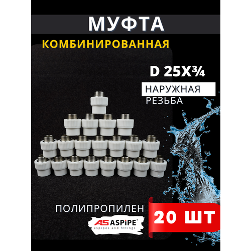 ASPiPE PPRC Муфта комбинированная с наружной резьбой 25-3/4 применяется для соединения полипропиленовых труб со стальными трубопроводами или запорной арматурой. Резьба нанесена на металлической втулке, запрессованной в корпус из полипропилена. На данную резьбу можно навинтить кран, другую муфту, гайку и др. Муфта комбинированная с наружной резьбой используются в трубопроводных распределительных системах жилых, административных и промышленных зданиях для транспортировки питьевой и технической воды, в системах отопления. Данная муфта легко совмещается со стальной арматурой, имеет все доступные размеры резьб, чтобы подбор фитингов не затруднил процесс монтажа сантехнических приборов. Характеристики ASPiPE PPRC Муфта Американка (нар. рез.) 25-3/4 Максимальное давление - 25 атм; Размер муфты - 25 мм; Размер резьбы - 3/4 дюйм