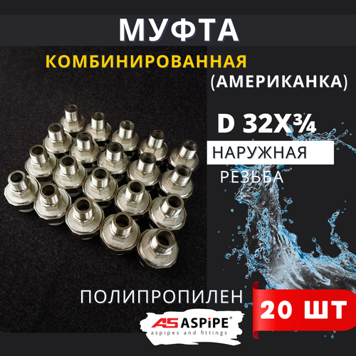 Муфта полипропиленовая 32х3/4 наружная резьба, разъемная (Американка) PPRC (ASPiPE) 20шт.: сравнение цен, характеристики, фото, актуальное наличие и цены.