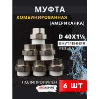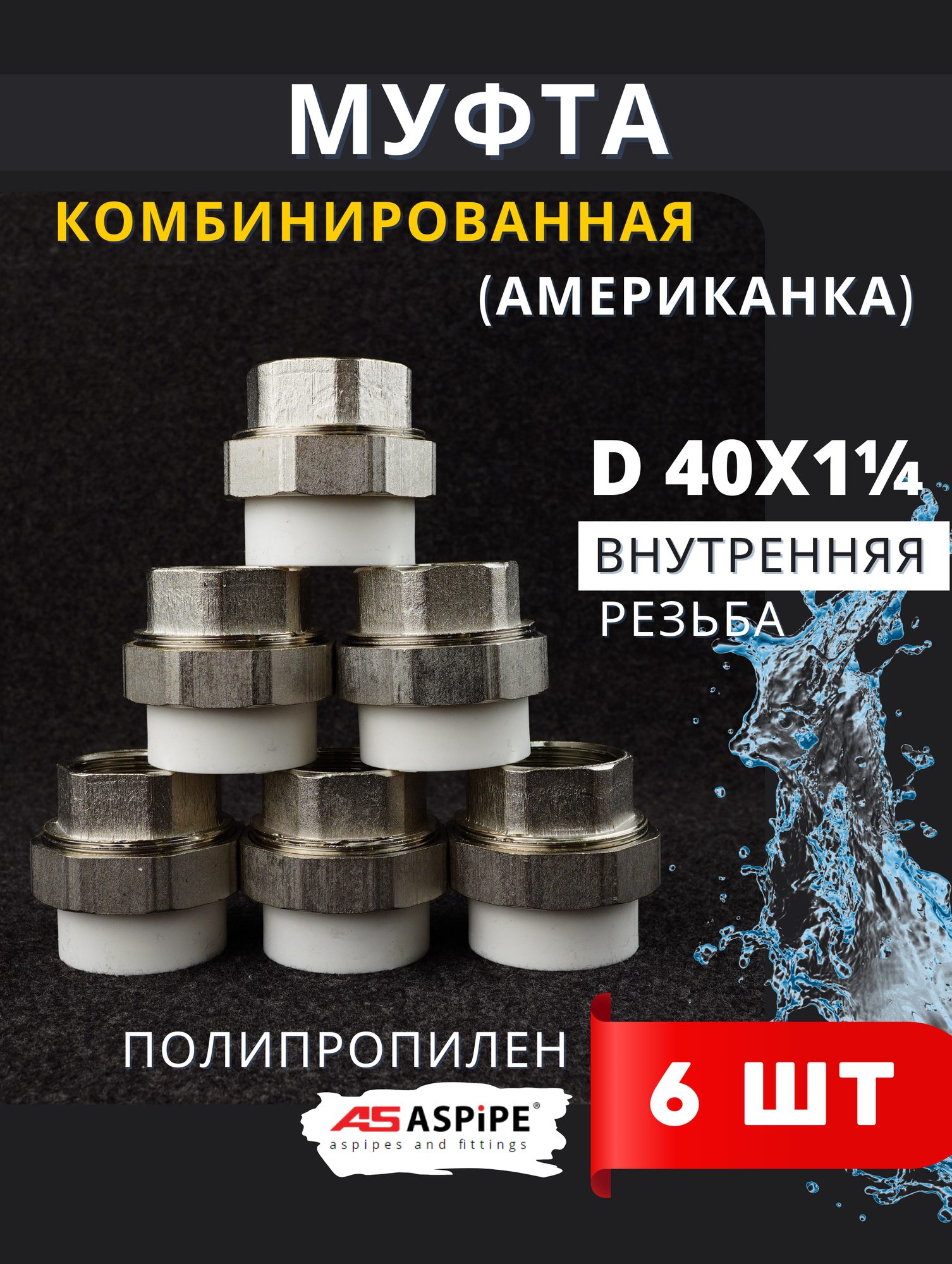 Муфта полипропиленовая 40х1 1/4 внутренняя резьба, разъемная (Американка) PPRC (ASPiPE) 6шт.: сравнение цен, характеристики, фото, актуальное наличие и цены.