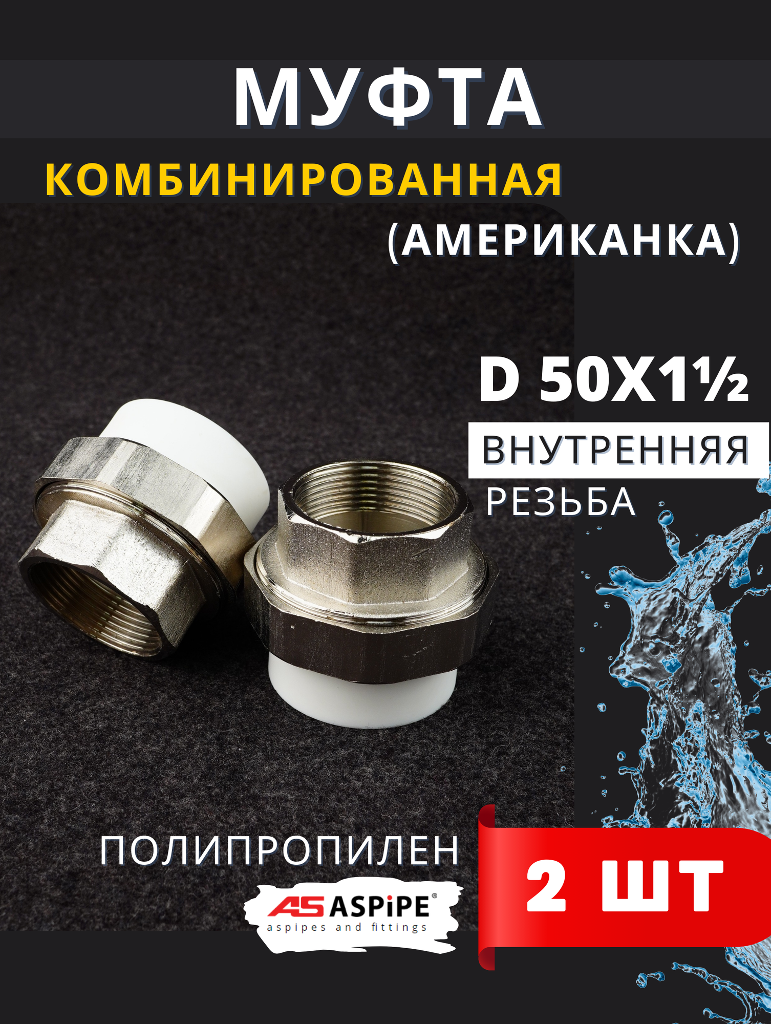 Муфта полипропиленовая 50х1 1/2 внутренняя резьба, разъемная (Американка) PPRC (ASPiPE) 2шт.: сравнение цен, характеристики, фото, актуальное наличие и цены.