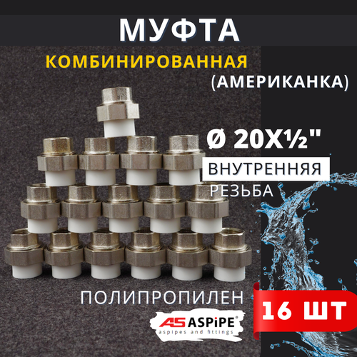 Муфта полипропиленовая 20х1/2 внутренняя резьба, разъемная (Американка) PPRC (ASPiPE) 16шт.: сравнение цен, характеристики, фото, актуальное наличие и цены.