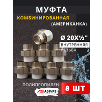 Муфта полипропиленовая 20х1/2 внутренняя резьба, разъемная (Американка) PPRC (ASPiPE) 8шт.: сравнение цен, характеристики, фото, актуальное наличие и цены.