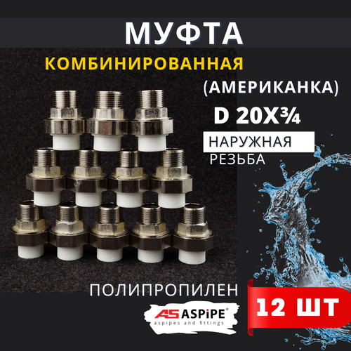 Муфта полипропиленовая 20х3/4 наружная резьба, разъемная (Американка) PPRC (ASPiPE) 12шт.: сравнение цен, характеристики, фото, актуальное наличие и цены.