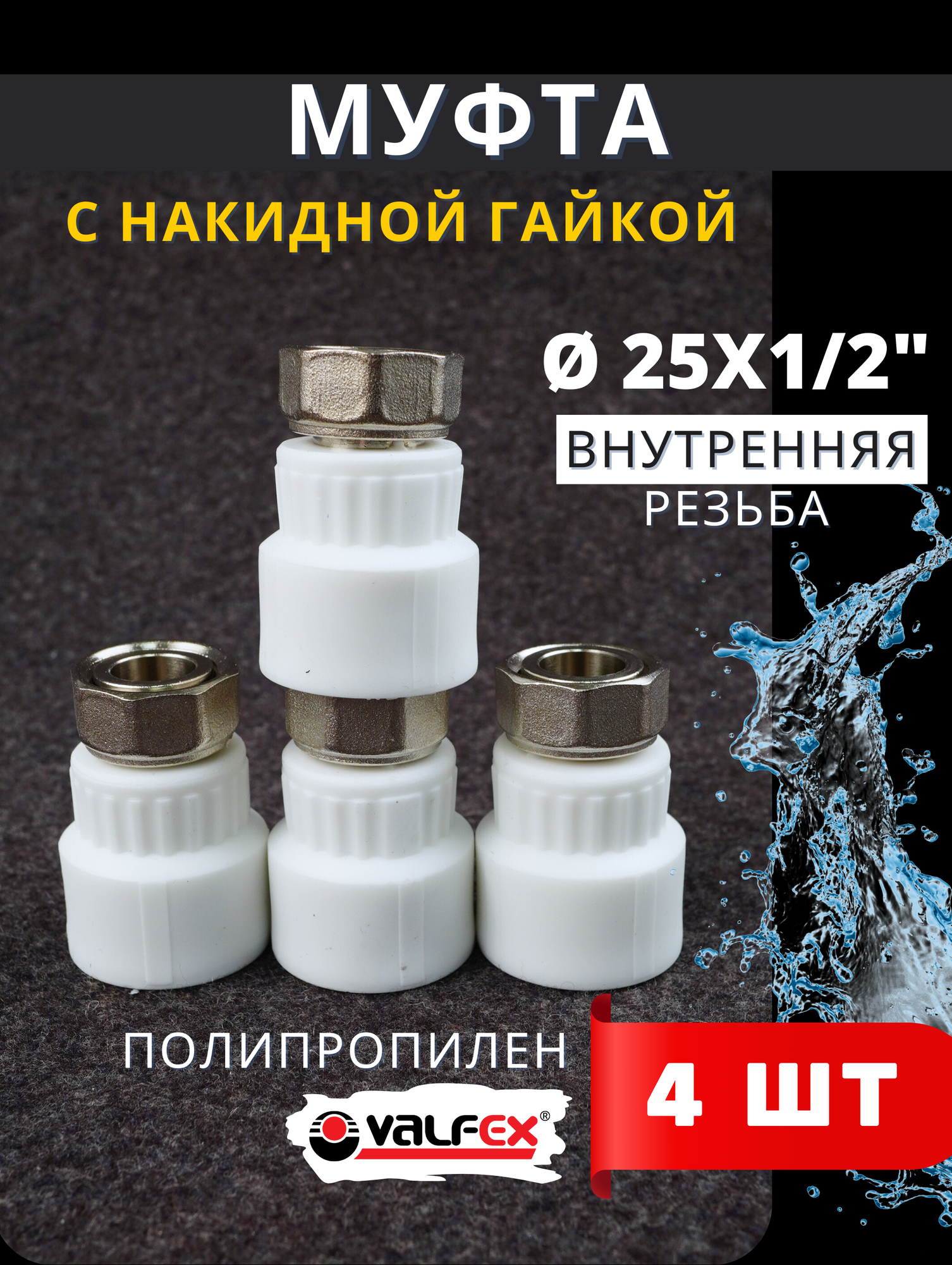 Муфта с накидной гайкой 25х1/2 внутренняя резьба, полипропиленовая PPRC (Valfex) 4шт.: сравнение цен, характеристики, фото, актуальное наличие и цены.