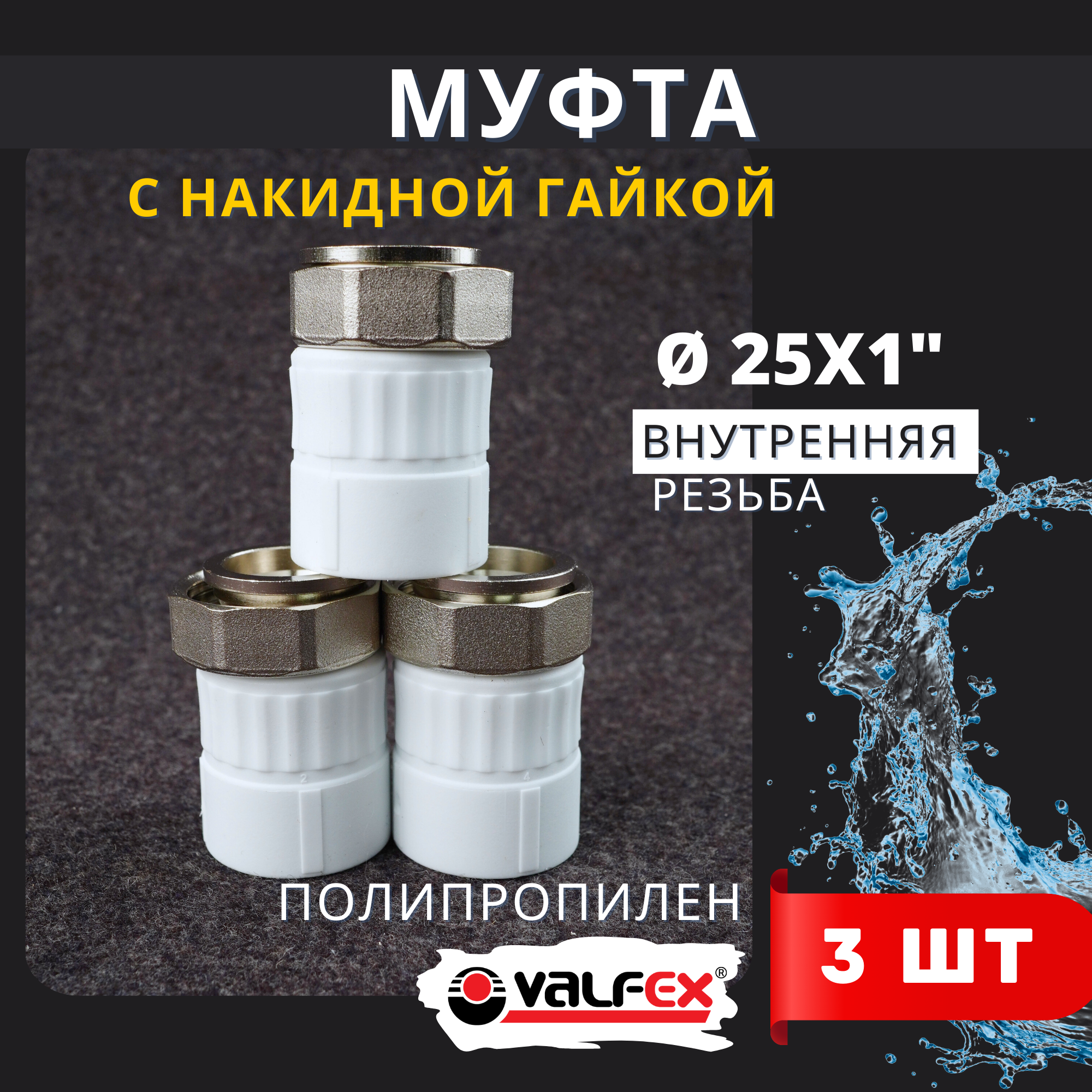 Муфта с накидной гайкой 25х1 внутренняя резьба, полипропиленовая PPRC (Valfex) 3шт.: сравнение цен, характеристики, фото, актуальное наличие и цены.