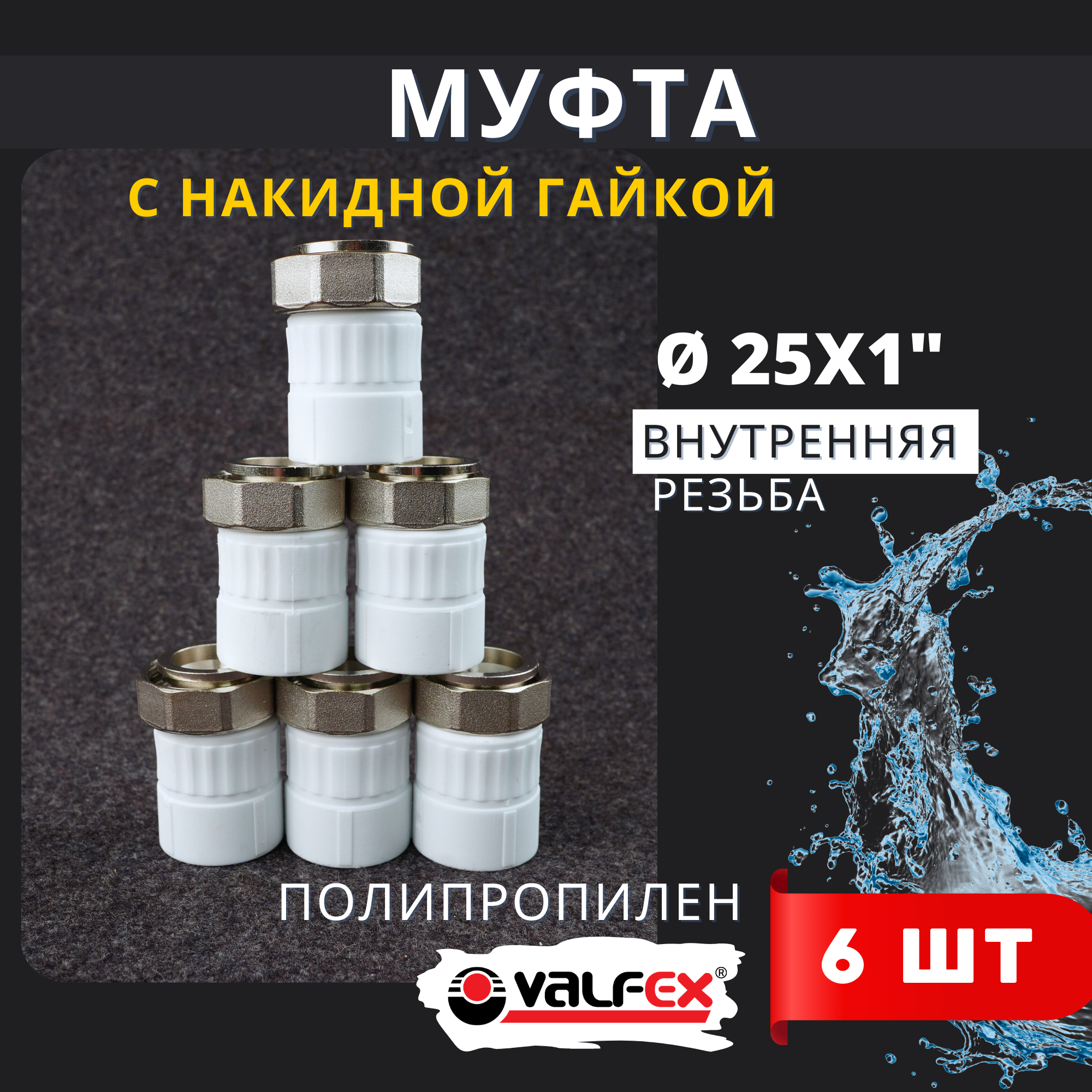 Муфта с накидной гайкой 25х1 внутренняя резьба, полипропиленовая PPRC (Valfex) 6шт.: сравнение цен, характеристики, фото, актуальное наличие и цены.