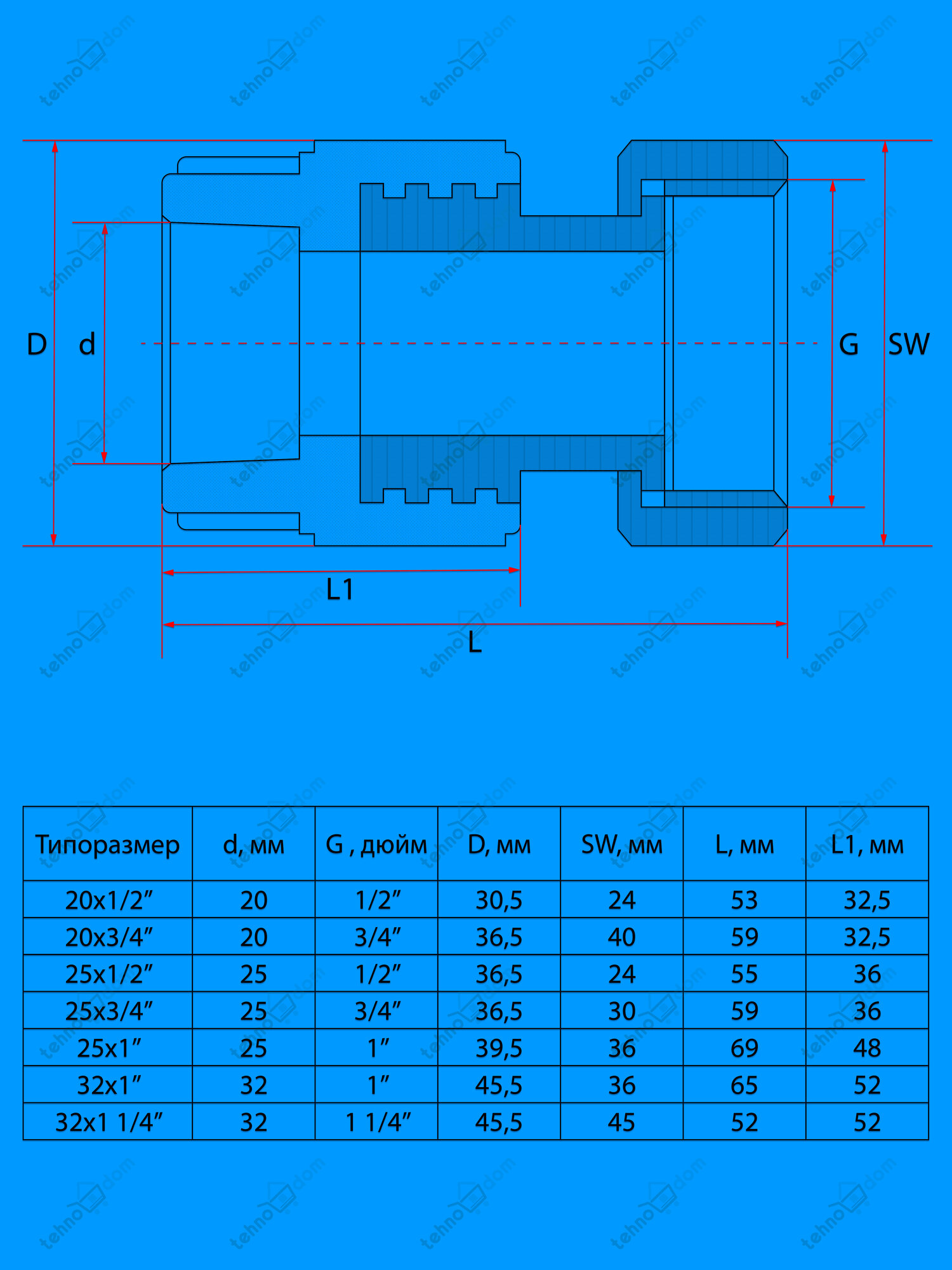Муфта с накидной гайкой 25×1″ (4 шт): сравнение цен, характеристики, фото, актуальное наличие и цены.