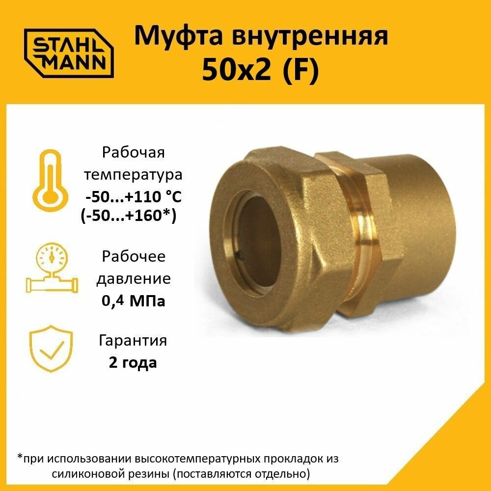 Муфта Stahlmann (F) 50х2 EF для водопроводных труб, внутренняя, латунь.: сравнение цен, характеристики, фото, актуальное наличие и цены.