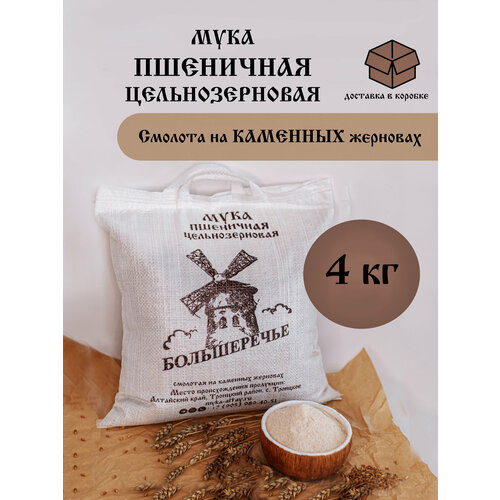 Мука пшеничная цельнозерновая "Большеречье", смолотая на каменных жерновах из колыванского гранита - одна из «золотой» троицы бренда- пшеницы, полбы и ржи.