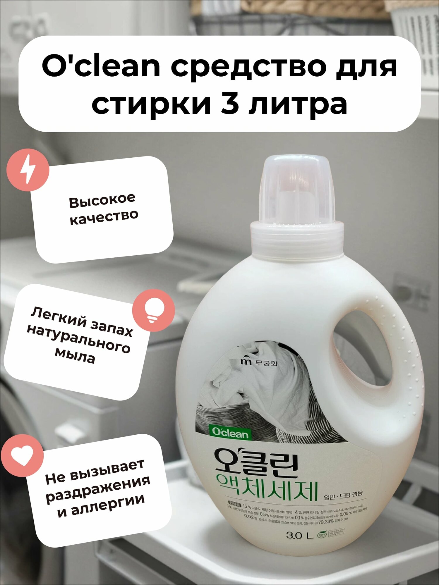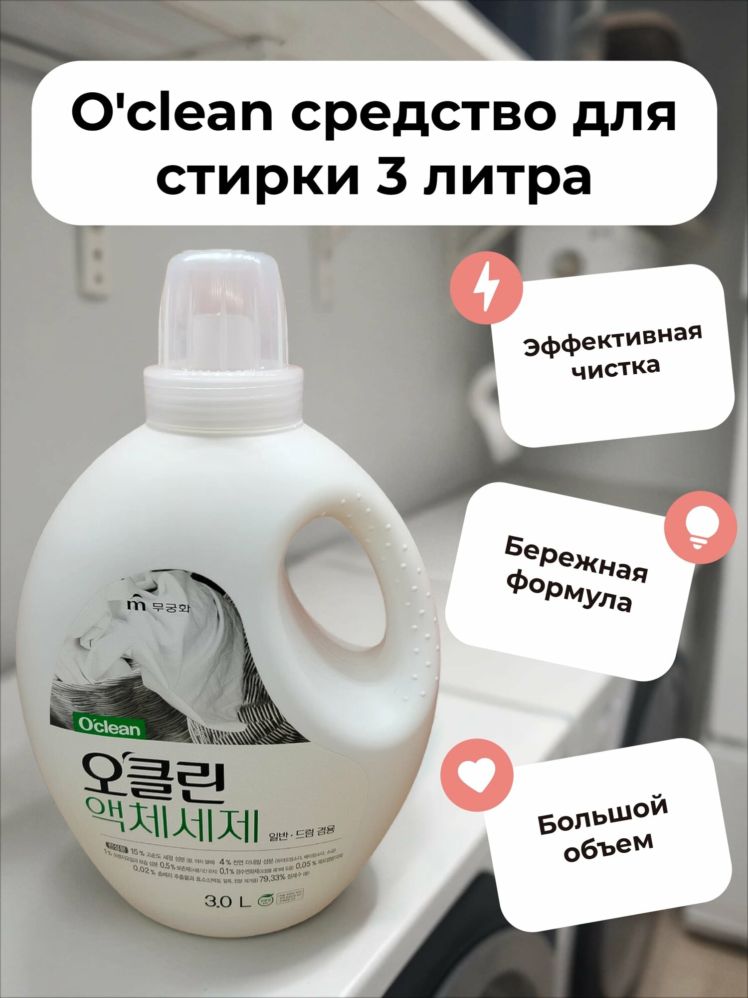 Корейское жидкое средство для бережной стирки на основе плодов мыльного дерева и соды с антибактериальным эффектом. 100 % органическое средство, бережное для кожи взрослых и детей.