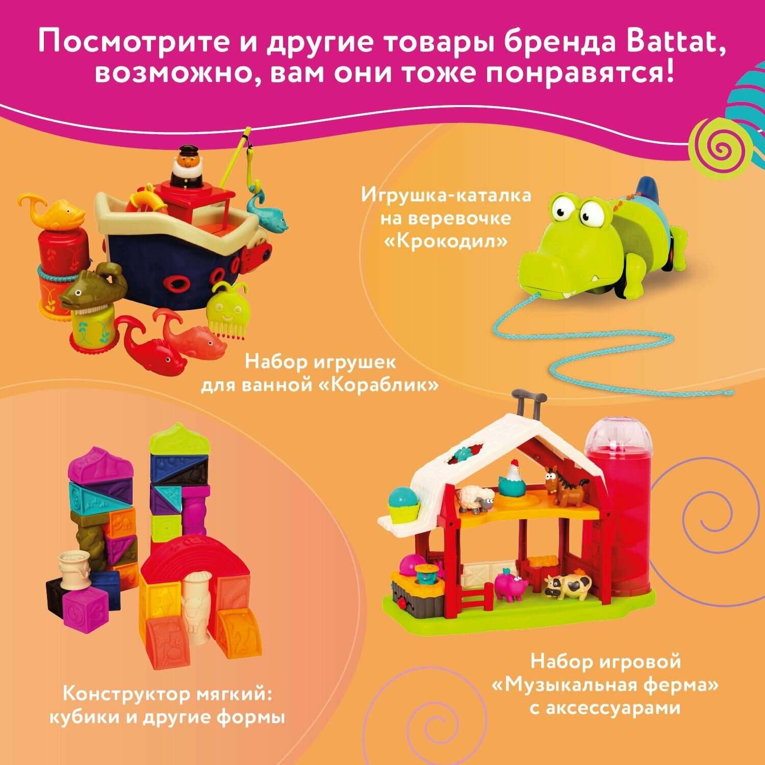Игрушки Battat задуманы, чтобы вдохновлять детей на индивидуальность, именно поэтому они имеют яркие цвета, завораживающие узоры, тактильные текстуры, а также функции, предназначенные одновременно для игры и обучения!