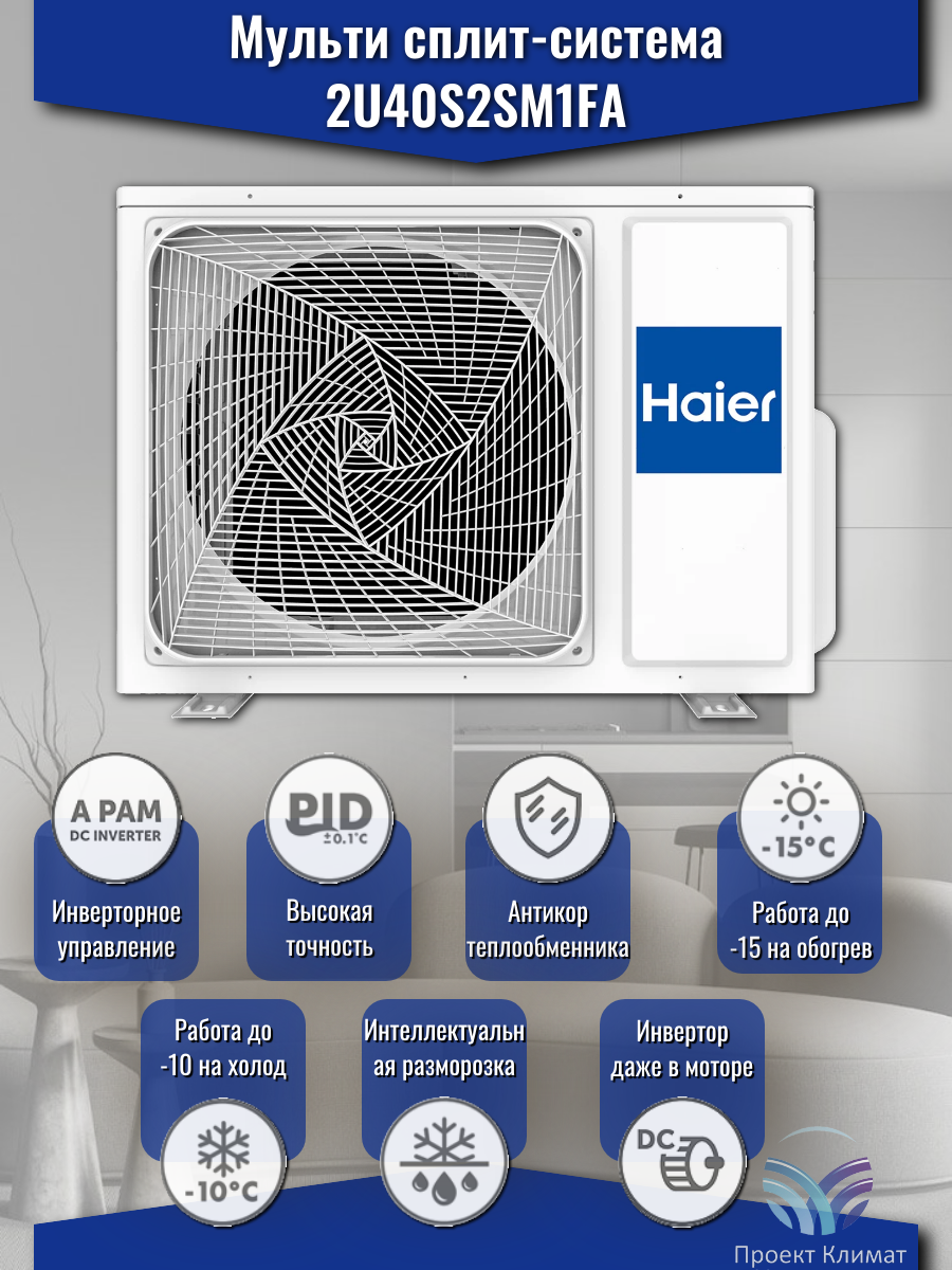 Купить Мульти-сплит система Haier 2U40S2SM1FA Наружный блок — инверторный кондиционер на 2 комнаты с доставкой по всей России. Мульти-сплит система Haier 2U40S2SM1FA Наружный блок — инверторный кондиционер на 2 комнаты: сравнение цен, характеристики, фото, актуальное наличие и цены.