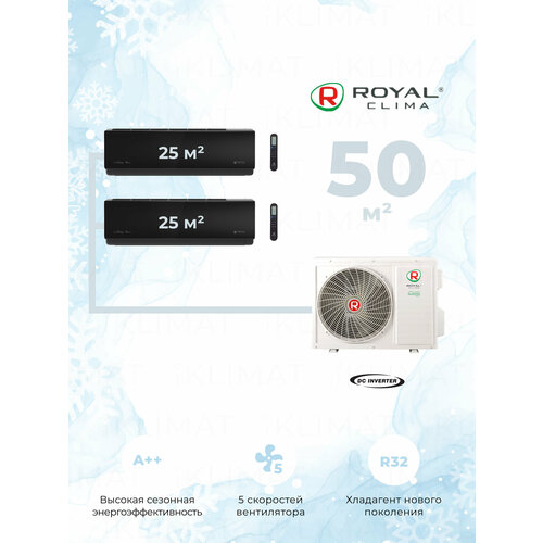 Инверторная мульти-сплит система Royal Clima Multi Gamma Attica Nero чёрного цвета на 2 комнаты (25 м2 + 25 м2) 2TFM-17HN/OUT + 2*RCI-AND09HN