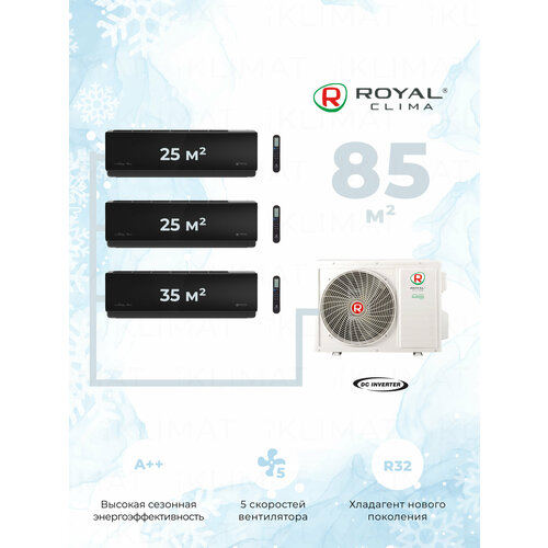 Инверторная мульти-сплит система Royal Clima Multi Gamma Attica Nero чёрного цвета на 3 комнаты (25 м2 + 25 м2 + 35 м2) 3TFM-25HN/OUT + 2*RCI-AND09HN + RCI-ANF12HN