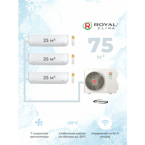 Инверторная мульти сплит-система Royal Clima Multi Gamma Perfetto на 3 комнаты (3*25 м2) 3TFM-25HN/OUT + 3*RCI-PFF09HN — гарантия 3 года, 7 скоростей, супертихая работа (от 20,5 дБ): сравнение цен, характеристики, фото, актуальное наличие и цены.