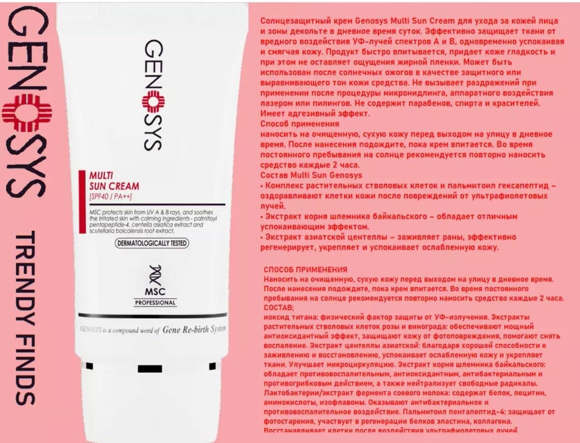 Multi Sun Cream SPF 40+ PA++ Солнцезащитный мультифункциональный крем Genosys: сравнение цен, характеристики, фото, актуальное наличие и цены.