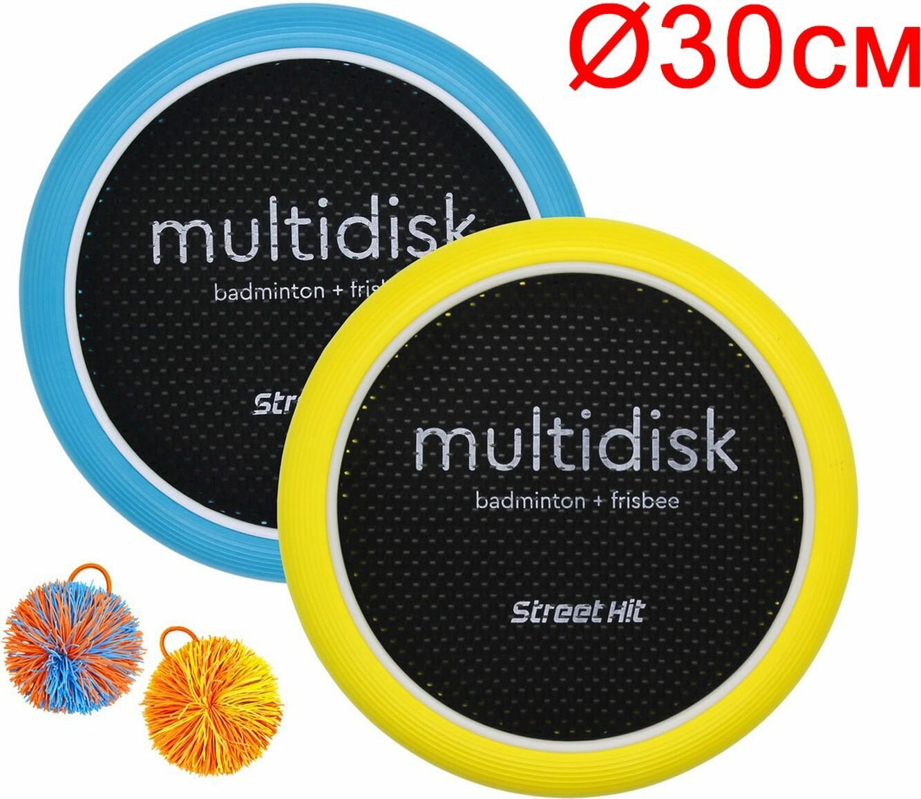 Мультидиск – это игровой набор, предназначенный сразу для нескольких видов активностей – бадминтона и фрисби. Сама тарелка представляет собой диск с натянутой в центре мягкой сеткой. С помощью мультидиска можно принимать и отбивать мяч, используя его как ракетку для бадминтона, а также можно бросать мультидиск друг другу как тарелку фрисби. В набор от Street Hit входят два диска и два стандартных мяча, которыми можно играть. Такой набор для игры мультидиск подойдет энергичным и активным людям, которые много времени проводят на свежем воздухе и любят проводить время с пользой. Набор для бадминтона пользуется огромной полярностью среди людей всех возрастов, ведь в бадминтон можно поиграть в любой компании: с коллегами на корпоративе, с семьей на даче или с друзьями на отдыхе. Прыгучий яркий мяч заменяет воланчик, но сам процесс игры не меняется: два человека встают друг напротив друга и по очереди отбивают мяч с помощью диска. За счет мягкой сетки мяч хорошо отскакивает, а игра приобретает высокую динамичность. Одно из главных преимуществ мультидиска – это невероятное количество разных вариантов игры: можно играть в бадминтон вдвоем, можно по двое в командах, а можно даже в одиночку, отбивая мяч вверх и стараясь поймать его диском. Это великолепная замена обычному бадминтон набору, ведь из мультидиска всегда можно сделать другую популярную игру – фрисби. Диск из набора отлично выполняет функции фрисби тарелки: просто запускайте его и следите за красотой полета! Фрисби мягкий и практичный в использовании, прочный материал обеспечивает удобную хватку, а небольшой вес диска положительно влияет на дальность полета. Мультидиск игра – новое и интересное увлечение для всей семьи и совместной игры на улице. Летающая игрушка позволяет весело проводить время на свежем воздухе и не забывать о необходимой для организма физической активности. Мультидиск фрисби очень нравится детям: яркий и удобный в применении огодиск можно взять с собой на прогулку с друзьями и впечатлить их своей новой игрушкой. Если вам захочется поиграть в пляжный бадминтон, то комплект multidisk отлично подойдет для этого занятия, ведь увлекательная и интересная игра покорит всех. Бадминтон считается одной из самых безопасных спортивных игр, которая при этом тренирует выносливость и заменяет физические упражнения. Тарелки батуты – это новшество в мире подвижных игр, благодаря которому у вас будет множество вариантов для развлечения. С таким набором можно играть во что угодно! Мячик на резинке заменяет привычные нам воланчики, а вместо ракеток мы используем мягкие диски. Набор с тарелками-батутами и мячиком – идеальный подарок на день рождения ребенку. Игровой набор бадминтон + тарелка фризби можно приобрести на любой праздник девочке или купить в подарок мальчику, ведь все любят энергичные и веселые игры. Myltydisk – великолепный подарок подростку, который с его помощью сможет играть в различные игры с друзьями или даже в одиночку. Такой игровой набор спортивный можно подарить на Новый год, на 23 февраля и 8 марта – красивая крафтовая упаковка сделает ваш подарок презентабельнее. Бадминтон детский набор (огоспорт) очень понравится ребятам, которые интересуются спортом и любят весело проводить время на улице. Диски заменяют набор пляжных ракеток, но, если игра в бадми