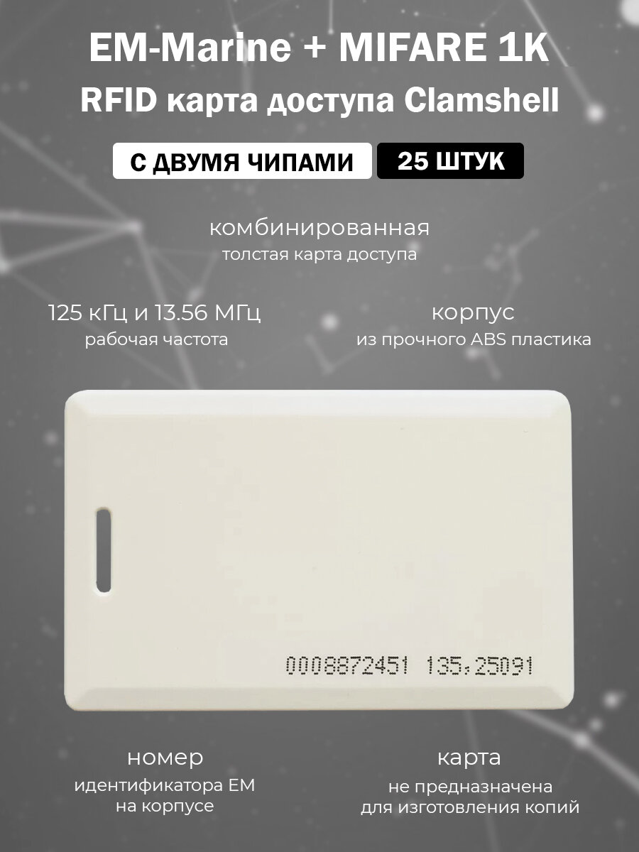 Мультиформатная двухчастотная карта EM-Marine + MIFARE 1K Clamshell (неперезаписываемая) с прорезью, упаковка 25 шт: сравнение цен, характеристики, фото, актуальное наличие и цены.