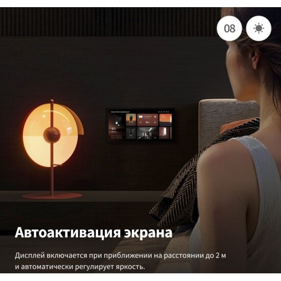 Экран автоматически включается при приближении на расстоянии до 2,5 метров, даже в темноте. Настройте автояркость для оптимальной видимости и защиты глаз.