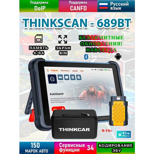 Автосканер THINKSCAN 689BT Беспроводной профессиональный мультимарочный инструмент имет ПОЖИЗНЕННОЕ БЕСПЛАТНОЕ ИСПОЛЬЗОВАНИЕ И ОБНОВЛЕНИЯ, без ежегодной платы!