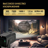 Сделайте каждый вечер особенным с домашним кинотеатром. Смотрите любимые фильмы, сериалы и шоу на экране от 1 до 5 м. Проектор 4к обеспечивает яркое и четкое изображение даже в полусветлых помещениях. Больше не нужно выбирать между телевизором, игровой приставкой и уютной атмосферой большого экрана — теперь всё это доступно прямо у вас дома. За счет компактных размеров игровой консоли проектора 9,8х19,2х12,7 см и легкого веса 830 г его легко перевозить (например, на дачу или в гости) в сумке или рюкзаке. Допускается установка на стол или пол.