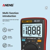 Цифровой мультиметр ANENG AN8004 Особенности: автоматический выбор диапазона, защита от напряжения 550 В в режиме измерения сопротивления. Основные измерения: напряжение переменного/постоянного тока, сила тока переменного/постоянного тока, сопротивление, емкость, проверка диодов и целостности цепи, частота и коэффициент заполнения.