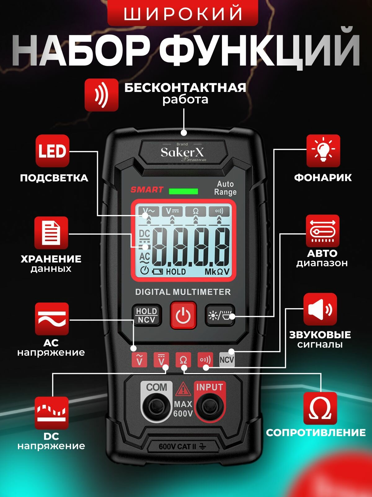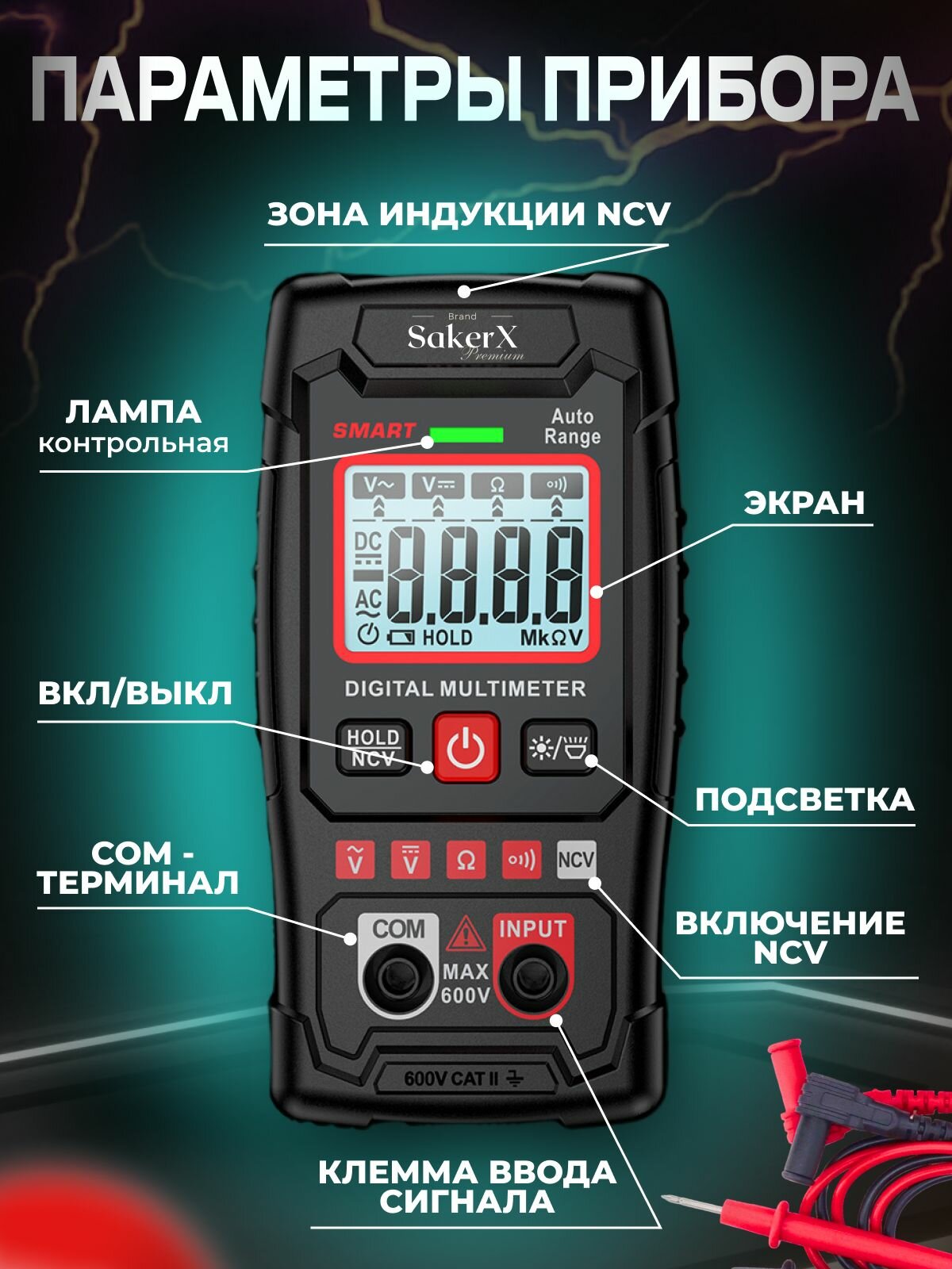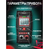 Мультиметр — это универсальный инструмент, который используется для измерения различных электрических параметров. Он оснащен цифровым дисплеем, что обеспечивает высокую точность и удобство считывания результатов. Прибор подходит как для профессиональных электриков, так и для любителей, занимающихся ремонтом электроники и бытовой техники. Основные функции мультиметра: * Измерение напряжения, тока и сопротивления. * Проверка диодов и транзисторов. * Определение емкости конденсаторов. * Бесконтактное обнаружение напряжения. * Прозвонка цепи. * Функция удержания данных. Прибор работает от батареек, поэтому он автономен и удобен в использовании на объектах без доступа к электросети. Это делает его незаменимым инструментом для электриков и строителей, работающих на выезде. Корпус мультиметра выполнен из прочного материала, который защищает прибор от повреждений. В комплекте с мультиметром поставляется чехол для хранения и транспортировки. Это обеспечивает надежную защиту прибора от пыли, влаги и механических повреждений. Мультиметр имеет функцию автоматического выбора диапазона измерений, что упрощает работу с прибором и снижает вероятность ошибки. Также он оснащен индикаторами перегрузки и низкого заряда батареи, которые своевременно предупреждают о возможных проблемах. Этот мультиметр идеально подходит для использования в доме, гараже или автомобиле. Он позволяет быстро и точно измерять различные электрические параметры, что необходимо при ремонте и обслуживании электрооборудования. Благодаря компактным размерам и легкому весу, мультиметр удобно хранить и транспортировать. Если вы ищете надежный и точный инструмент для измерения электрических параметров, то мультиметр — отличный выбор. Он станет незаменимым помощником как для профессионалов, так и для любителей.