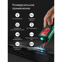 | Особенности | автоматический выбор диапазона измерений, защита от перегрузки, подсветка дисплея, фиксация измерений, фонарик |