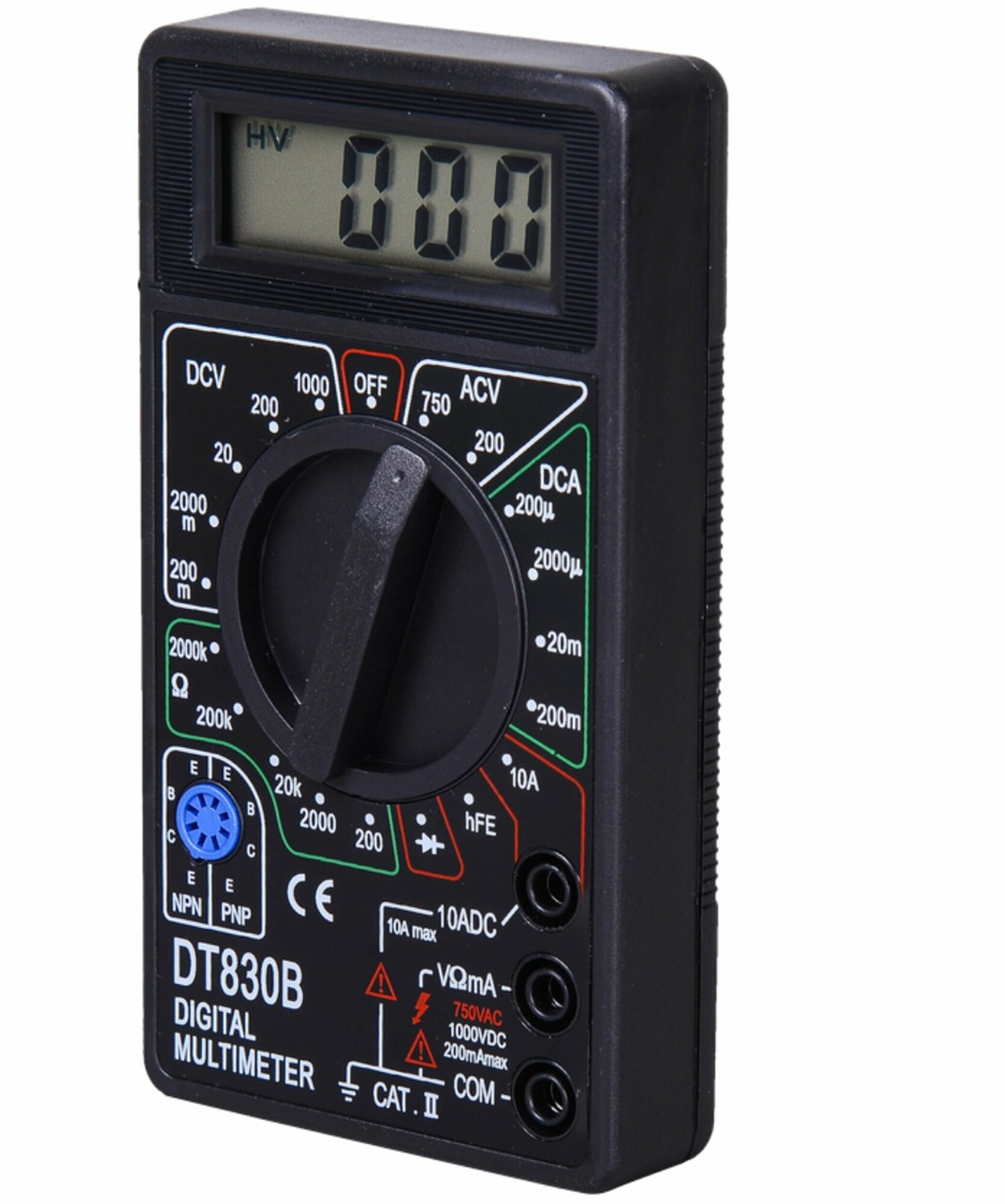 20 позиционный переключатель режимов работы и пределов. Высокая чувствительность - 100мкВ. Автоматическая индикация перегрузки - "1". Автоматическое определение полярности постоянного тока или напряжения. Все пределы защищены от перегрузок. Измерение сопротивления от 0,1 Ом до 2 МОм. Проверка диодов прямым стабильным током 0.8 мА. Измерение h21E транзисторов при Ib=100 мкА.