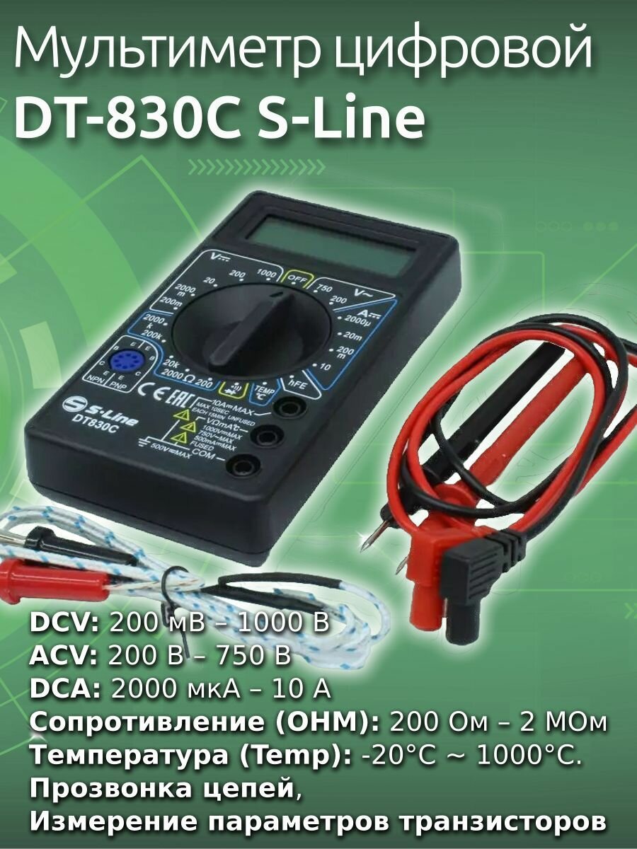 Купить Мультиметр универсальный DT-830C S-Line (упаковка 10 шт) с доставкой по всей России. Мультиметр универсальный DT-830C S-Line (упаковка 10 шт): сравнение цен, характеристики, фото, актуальное наличие и цены.