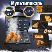Купить Мультипекарь 6 в 1 с антипригарным покрытием 2000W / Вафельница со сменными панелями Гриль Орешница / Аппарат пончик-мейкер с доставкой по всей России.