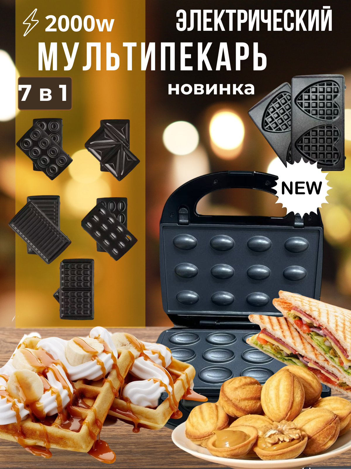 Вафельница для венских вафель - это универсальный кухонный гриль, который заменит вам сразу шесть разных кухонных приборов для выпечки. Это настоящий мультипекарь, оснащенный сменными панелями, позволяющими готовить различные блюда: венские вафли, сэндвичи, бутерброды, мясо на гриле, шаурму, стейки, печенье "Мадлен", пончики и даже орешки. В комплекте поставляются сменные насадки: вафельница для бельгийских вафель, электрическая орешница, сэндвичница, бутербродница, гриль, панель для печенья "Мадлен" и панель для курабье, сосисочница хот-дог Благодаря антипригарному покрытию, вафельница легко чистится, а защита от перегрева обеспечивает безопасность использования. Корпус мультипекаря выполнен из жаропрочного пластика, что делает его безопасным при контакте с продуктами. Ручки не нагреваются, что также обеспечивает комфорт при использовании. Эргономичный дизайн и компактный размер вафельницы позволяют ее удобно брать с собой на дачу или в путешествие. Выпечка готовится всего за 5 минуты, при этом не нужно лить много масла - достаточно слегка протерть панели маслом, чтобы избежать лишнего расхода и протекания на нагревательные элементы. Насадки легко снимаются и легко моются, что упрощает процесс ухода за прибором. Два индикатора сигнализируют о том, что прибор включен в сеть (красный свет) и когда панели разогрелись и готовы для выпечки (зеленый свет). Высокое качество материалов и сборки гарантирует долгий срок службы вафельницы.
