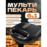 Купить Мультипекарь для приготовления вафель/мультикондитер/Вафельница, сендвичница электрическая, орешница, гриль,6 в 1, индикатор нагрева,2000Вт, черный с доставкой по всей России.
