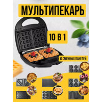 Мультипекарь 10в 1 - это многофункциональный прибор для приготовления различных видов выпечки и сэндвичей. Он оснащен 10 сменными панелями, которые позволяют готовить вафли, выпечку, печенье, гриль, орешки, пончики, ракушки, сэндвичи, тонкие вафли и венские, бельгийские вафли.
