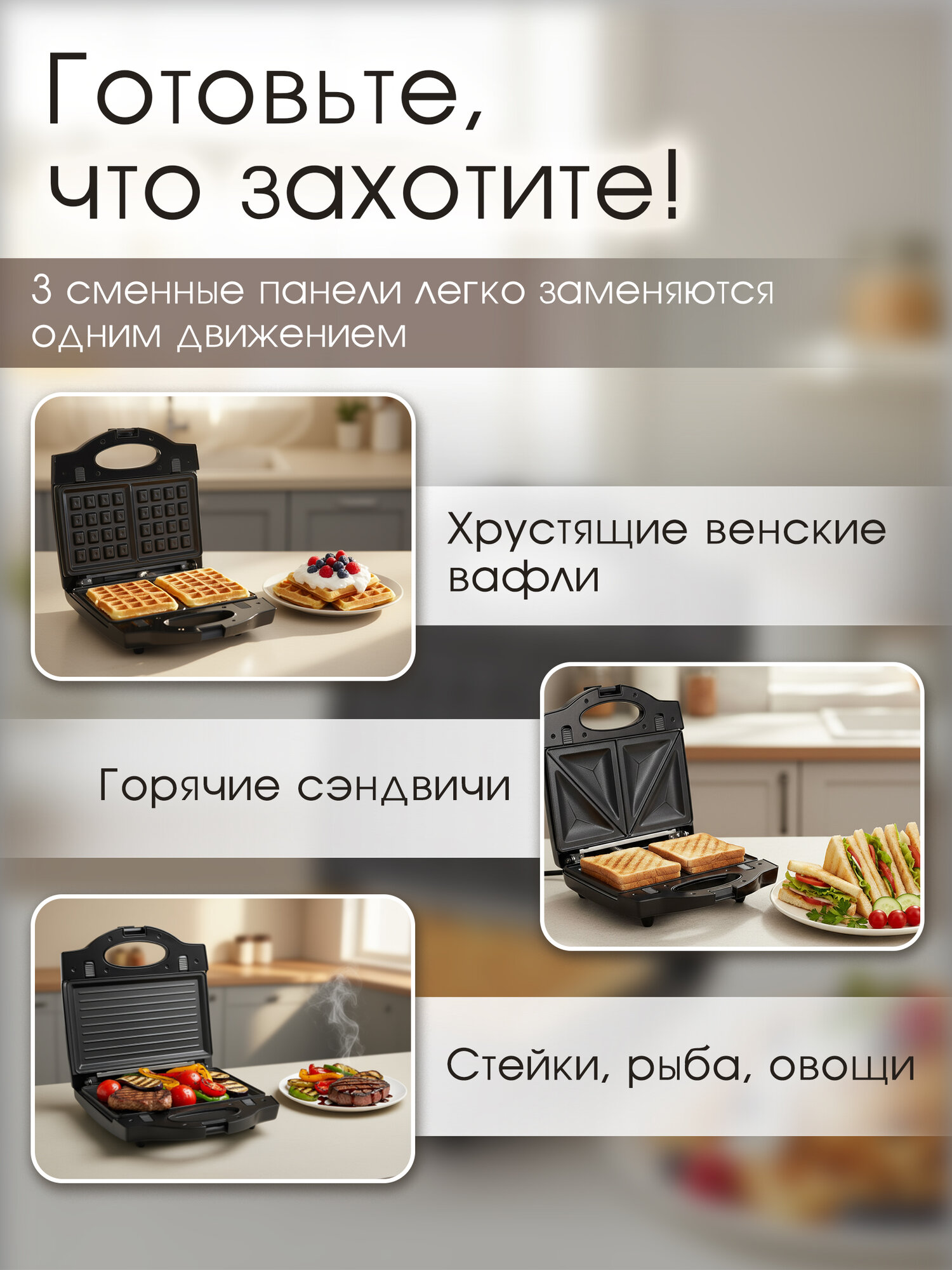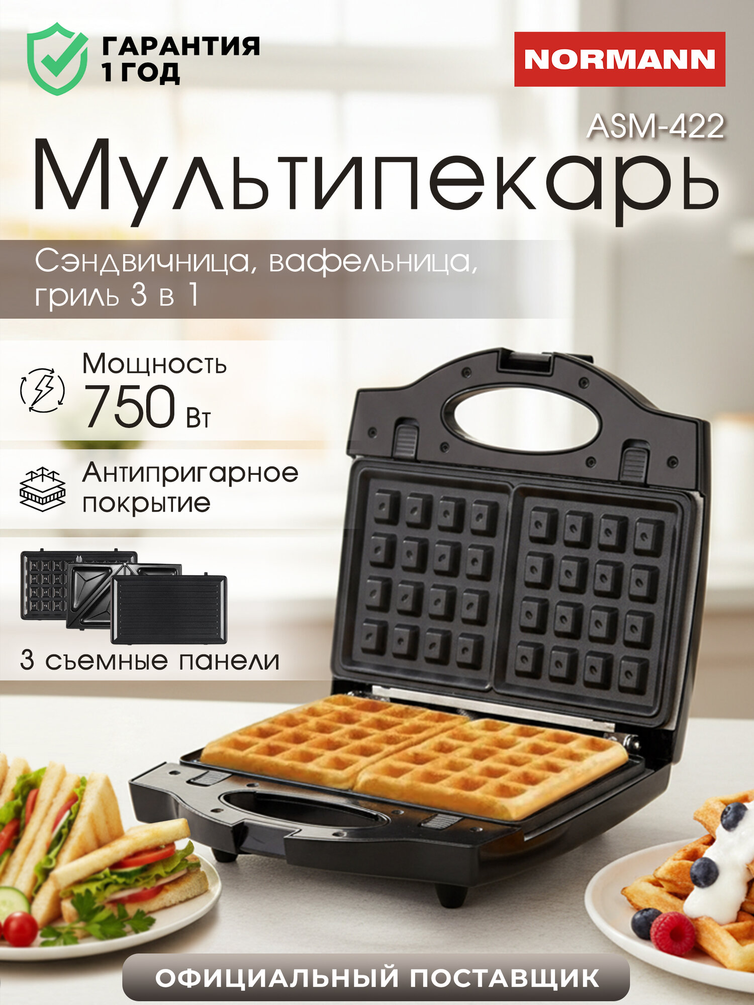Купить Мультипекарь 3в1 сэндвичница вафельница гриль ASM-422 750 Вт, антипригарное покрытие с доставкой по всей России.